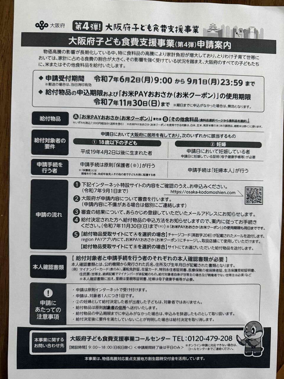 第4弾! 大阪府子ども食費支援事業 2025年06月12日 皆さんご存じのことと思いますが念のためのご案内です! 今回は、支援金額が 5000円 → 7000円に増額されています。 該当のお子様をお持ちの方は、是非忘れずに申請してくださいね! 申請期間は、2025年9月1日(月)23:59までです。 お早めに!! < 前の記事次の記事 > コメント コメントフォーム 名前 コメント 記事の評価 リセット リセット 顔 星 情報を記憶 コメントを投稿する